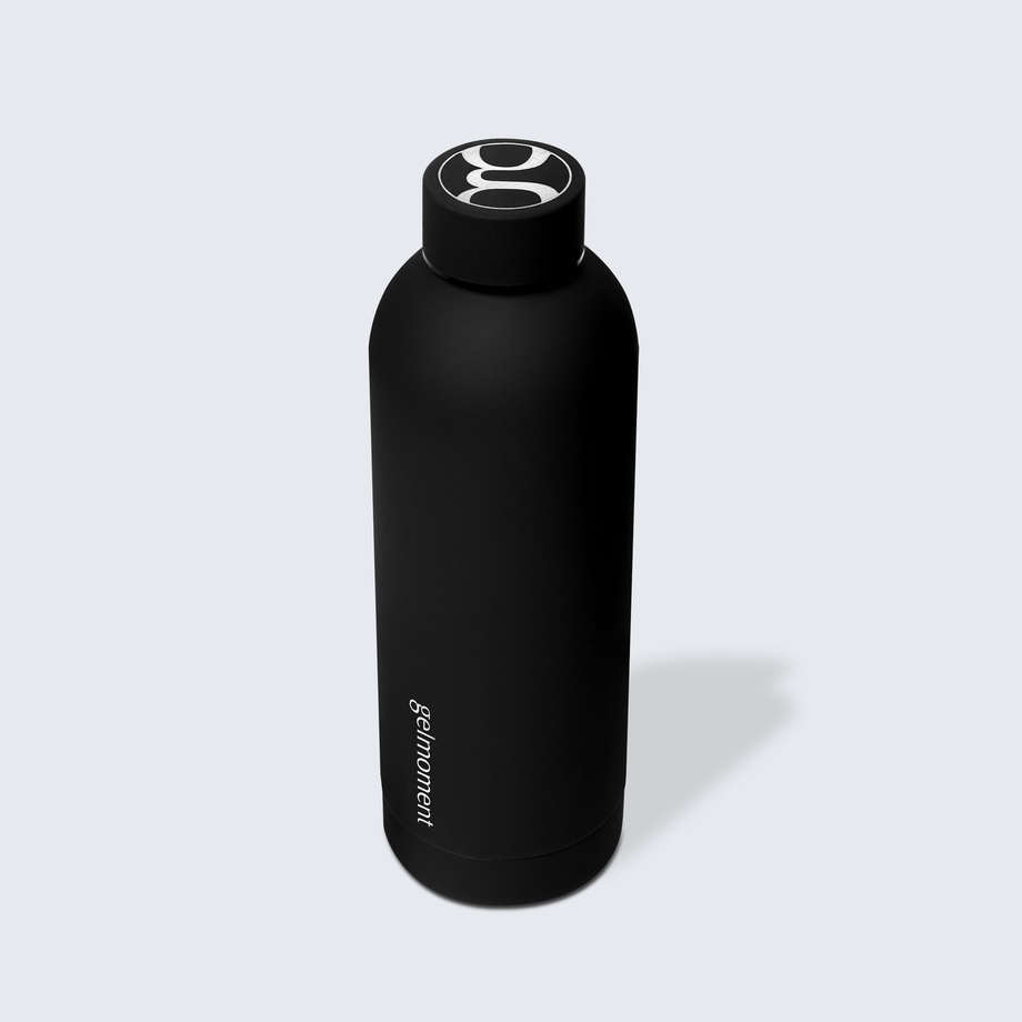 An additional plus of our water bottles is their distinct design. They’re available in two colours—matte pink & matte black—both tastefully branded with the gelmoment logo along the side & on the cap. The matte finish is super soft, and adds such a gorgeous, unique touch to this indispensable product.